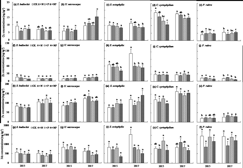 图. 氮磷添加对热带次生林林下植物叶片矿质元素含量的影响
