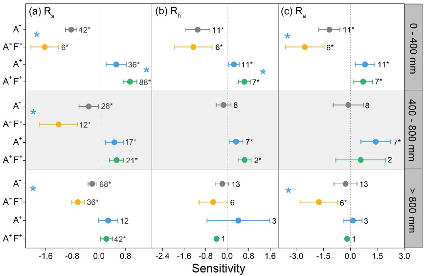 全球变暖加剧了水文循环,导致降水状况(频率和数量)发生变化,这可能对土壤呼吸(Rs)产生重大影响。尽管人们对Rs对降水量变化的响应进行了广泛的研究,但对于全球降水频率(PF)的变化将如何影响Rs,却未有共识。