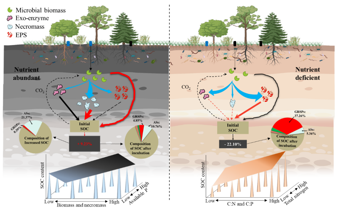 华南植物园揭示养分可获得性和化学计量比调控微生物对土壤有机碳固持的介导效应