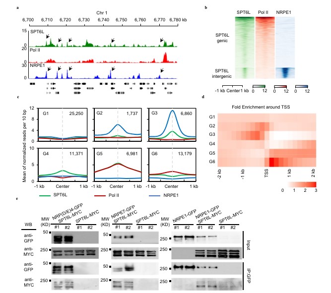 图1. SPT6L和Pol V在体内形成复合物并且共定位于基因间区