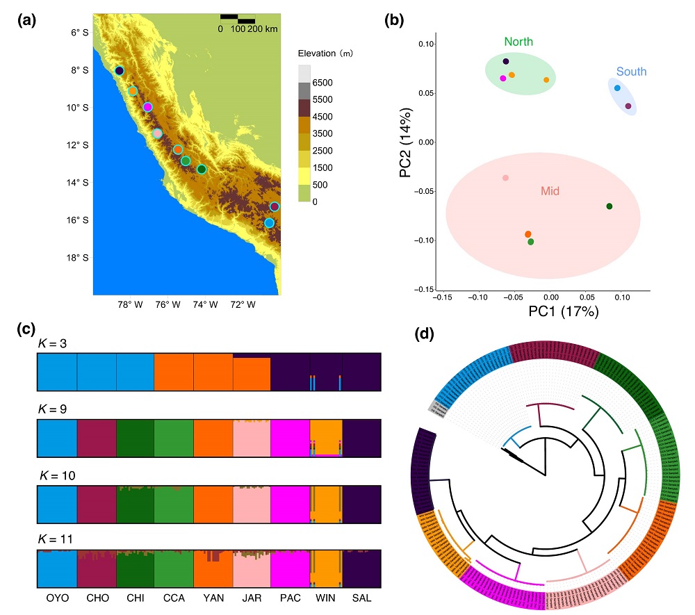 图2. 安第斯皇后凤梨9个群体的遗传结构