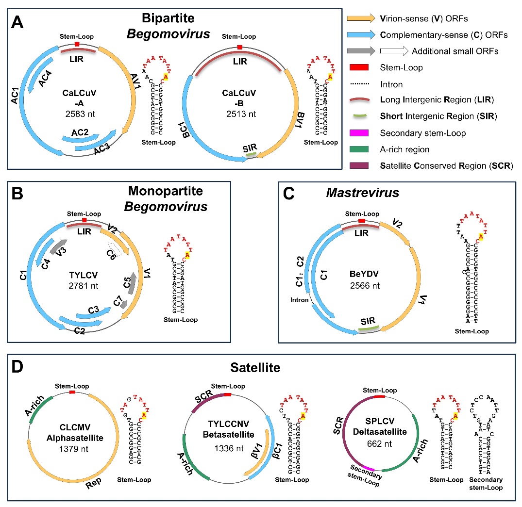 图1. 双生病毒基因组及卫星DNA