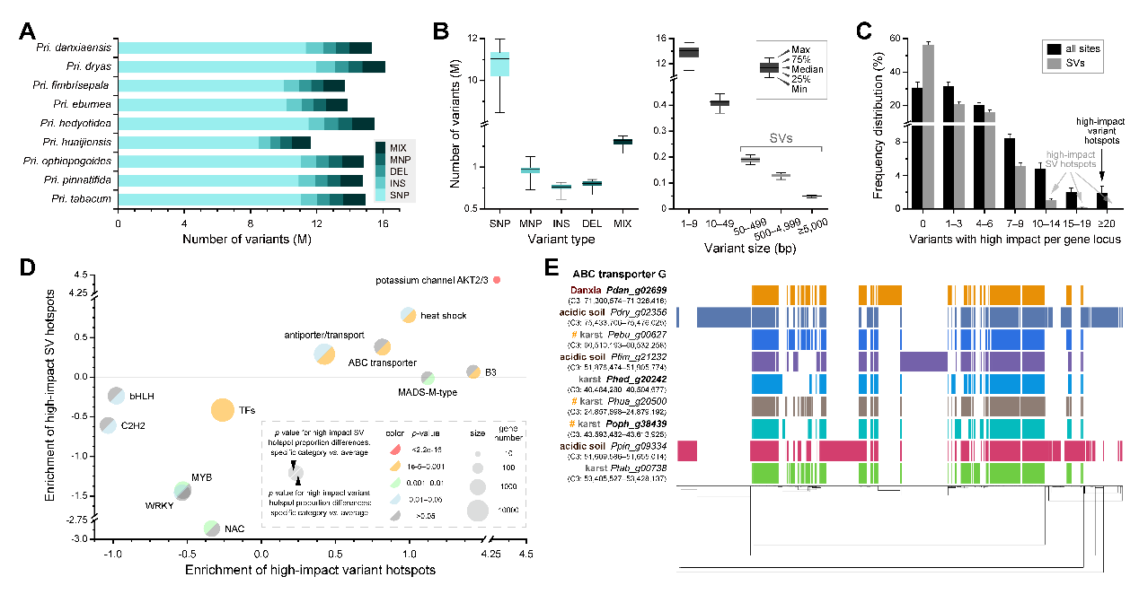 图3. 报春苣苔属图形泛基因组拓扑结构中的遗传变异