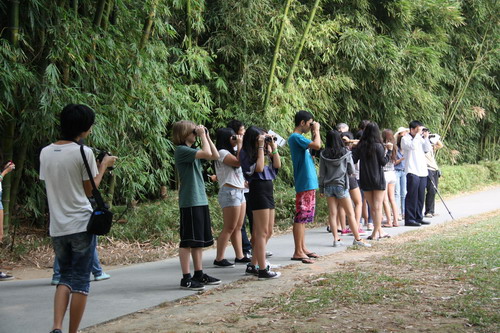 当天,师生们首先来到了科普信息中心,由黄瑞兰博士向大家做了关于观鸟(Birding)的科普报告,期间穿插有奖问答环节,开展互动。随后,学生们到户外亲自体验观鸟的乐趣,当学生们看到望远镜中清晰、活泼的鸟儿时,不时发出惊叹:“Gorgeous!”,“Beautiful!”