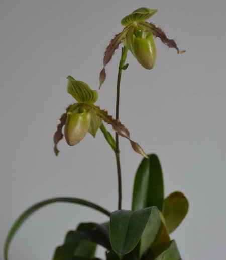 据介绍,绿翡翠兜兰是2008年以引进的报春兜兰为母本、菲律宾兜兰为父本进行杂交,经无菌播种繁殖而成的杂交一代品种。