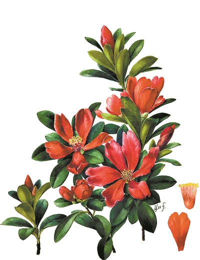杜鹃红山茶。1986年在广东信宜发现。作者:余峰