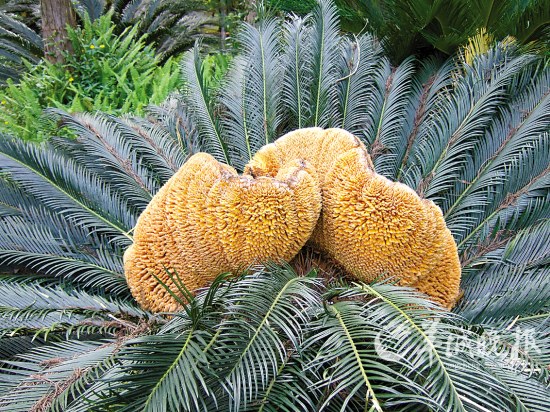 作为“恐龙的主食”,苏铁堪称植物界的活化石。1995年,我国把野生苏铁列为一级重点保护植物,严禁进出口贸易。华南植物园苏铁园创建于1979年,是全国最早的苏铁迁地保护基地,目前有40多种苏铁,开花的有11种。苏铁是雌雄异株植物,授粉成功后可结出红色鸡蛋样的果子。