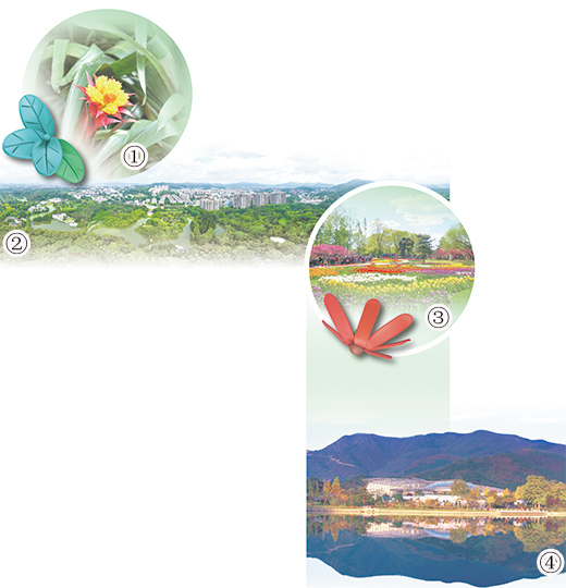 图④:国家植物园北园湖区及温室。