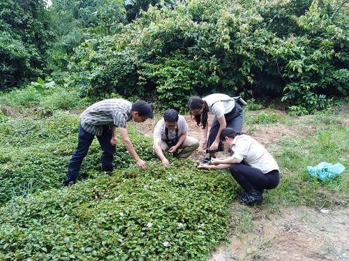 6月26日,国家林业局新品种保护办组织专家对华南植物园申请的野牡丹属(Melastoma L)新品种‘紫霞’‘铺地花2号’进行现场审查。专家组成员为福建农林大学彭东辉教授,华南农业大学邓小梅教授和广州市林业与园林科学研究院代色平教授级高工。华南植物园园艺中心副主任廖景平、夏汉平热情接待专家组一行,引种保育部相关工作人员陪同参加现场审定。