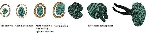 图1. 兜兰种胚发育与萌发。