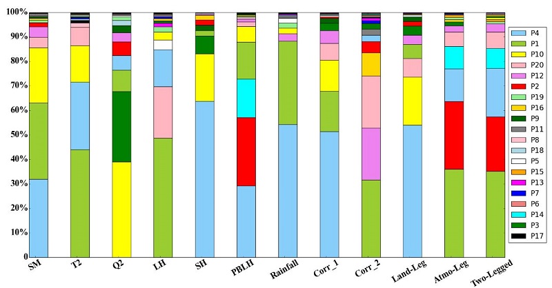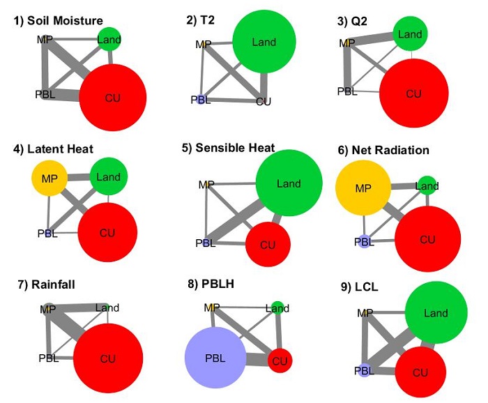 图1. 模型中不同物理过程对9个陆-气耦合相关变量的重要性分析。