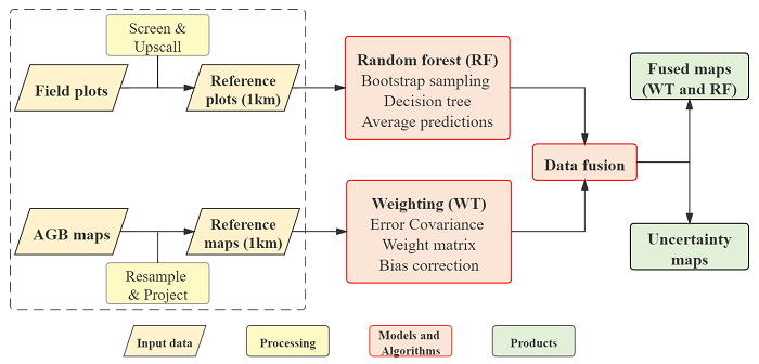 图 1. 多源数据融合估算森林地上碳储量技术路线图