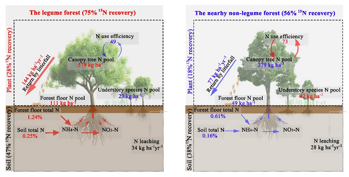 华南植物园揭示豆科主导森林的大气沉降氮去向和分配模式