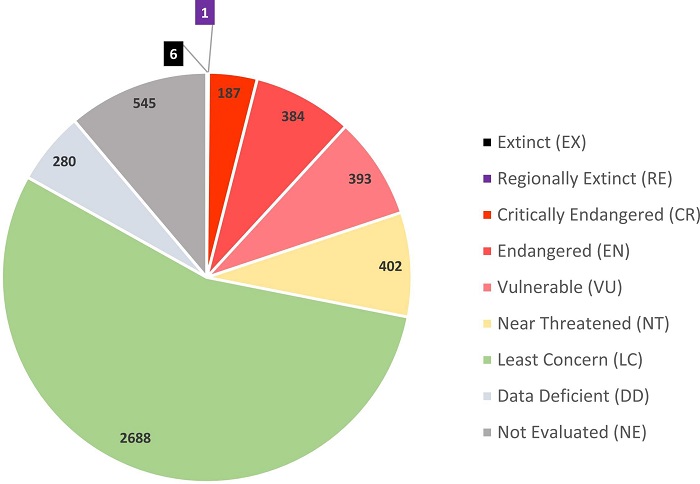 图4:中国树木各濒危等级在中国植物园迁地收集情况