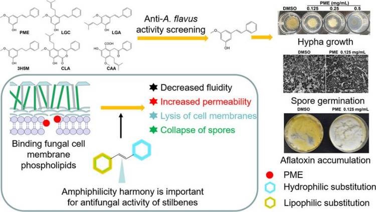 图. PME抗黄曲霉机制及芪类化合物抗菌构效关系