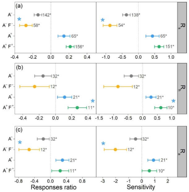 全球变暖加剧了水文循环,导致降水状况(频率和数量)发生变化,这可能对土壤呼吸(Rs)产生重大影响。尽管人们对Rs对降水量变化的响应进行了广泛的研究,但对于全球降水频率(PF)的变化将如何影响Rs,却未有共识。