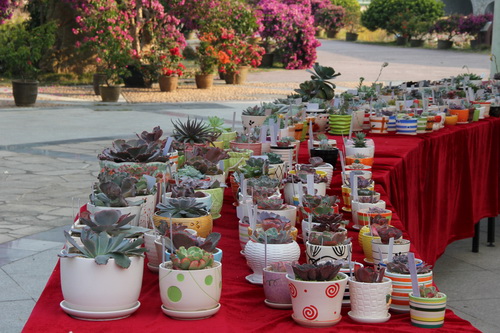 在2014年元旦来临之际,华南植物园特举办“荟萃园艺景天专题展”,展出两年来从国内外精心收集和繁育的景天植物。本次展览分12区8类别布展,集23个属、11个杂交属共1800品种和种类;其中石莲花类超过1000个、长寿花55个、水泡30个、莲花掌类60个、青锁龙类130个、仙女杯类19个、景天属类90个、长生草60个,其中有不少难得一见的品种。欢迎广大景天控们和多肉爱好者前来参观鉴赏,交流交换无任欢迎!