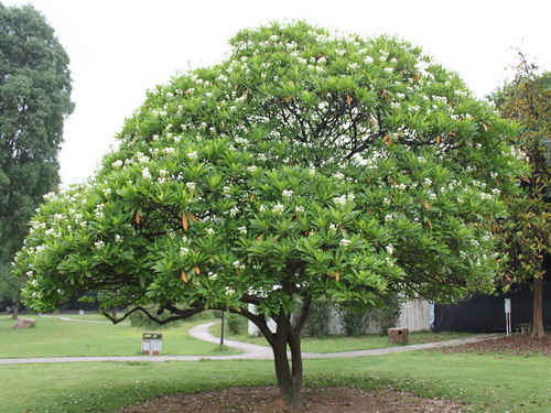 夏日大雨滂沱之后,花儿都垂下了高傲的头,而有一种花不仅没有偃旗息鼓,而在雨后更顽强地绽放,树上开满白花,洁白而芳香,它就是海杧果。因果实像芒果而得名,不过千万不要因长相似芒果而误食,会致死。