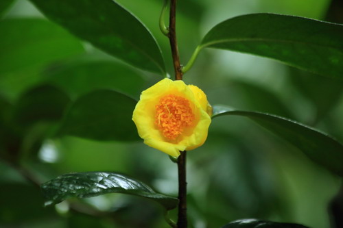 金花茶(Camellia petelotii (Merr.) Sealy),又名多瓣山茶。山茶科(Theaceae)常绿灌木或小乔木,高约2~5m。花大,金黄色,耀眼夺目,金瓣玉蕊,腊质晶莹,似有半透明之感,点缀于光亮的绿叶间,高贵雅致,无与伦比。每年1月-4月开花,花期长。