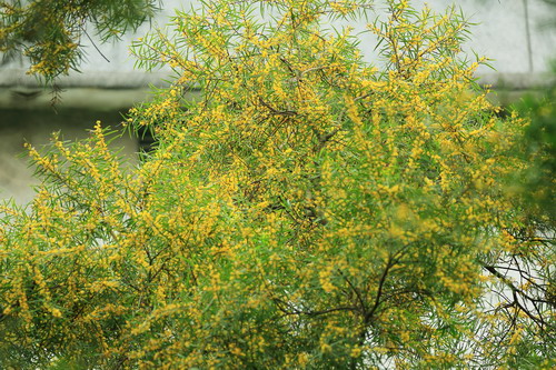 相思树,一个十分浪漫的名字,是否会让你想到那红色的相思豆——恋人的爱情信物呢?可惜的是,美丽的相思豆并非相思树所生。王维的“红豆生南国,春来发几枝,愿君多采集,此物最相思”中的红豆,是一种蝶形花科红豆树(Ormosia hosiei)的种子。而另一种常用做手链的红色带黑点的“红豆”,是蝶形花科相思子(Abrus precatorius)的种子,有剧毒。而相思树并不会结出红色的种子,只会结出咖啡色的扁扁的小不点儿种子,并不好看,其貌不扬。但相思树的花非常美丽,满树金黄,一簇簇“毛茸茸”的小花甚是可爱。