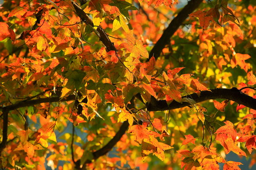 北方的红叶已落下帷幕,广州可是最近才刚刚入秋,每年这个时候,枫香树的叶子就最先感知到秋的来临,树叶由绿变黄变红,在阳光的照耀下发出五彩斑斓的光芒,呈现出一派秋色胜春光的美景。