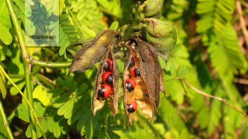 我们在旅游景点经常还能买到另一种红色带黑点的“红豆”手链,那是相思子(Abrus precatorius)(又名鸡母珠)的种子,蝶形花科相思子属植物,有剧毒,可千万不能吃哦。