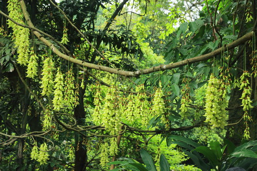 华南植物园阴生植物区内最大的一株白色禾雀花已经生长了几十年,藤蔓不断攀爬延伸,花越开越多,绵延方圆上千平方米范围,每年开花时,甚是壮观。