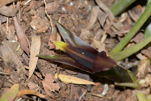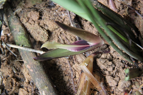兰花蕉的花生于靠近地面的地方,颜色是不太鲜艳的黑紫色,这主要是因为它特殊的传粉机制造成的。兰花蕉的花在开放期间散发一种特殊的气味,有研究报道,分泌特殊气味的气味腺散布在花的整个唇瓣上。而兰花蕉散发的特殊气味会吸引它的传粉者蜣螂(俗称屎壳郎)来为它传粉。如果有人闻过兰花蕉的味道,一定就会深深地理解传粉者为什么会是蜣螂,别说我怎么知道的,这种事我会乱说吗?兰花蕉科植物缺乏蜜腺,只提供这种很强烈的气味来吸引蜣螂,但蜣螂并未得到实质性的传粉奖励,是一种欺骗性传粉。兰花蕉很聪明对不对?