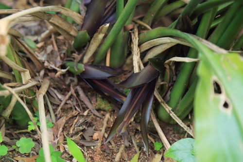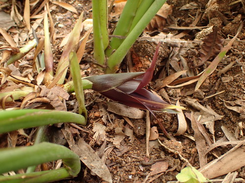 兰花蕉的花生于靠近地面的地方,需要拨开上部的叶子才能看到