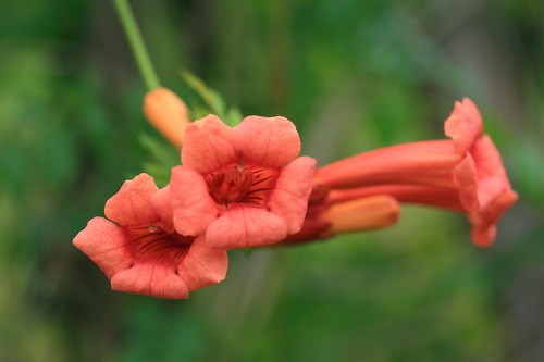 厚萼凌霄(美国凌霄)Campsis radicans。与凌霄相比,厚萼凌霄花冠开口小,花冠筒细长