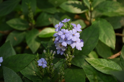 观察、记录可爱花的花期已经有数个年头了,这种原产印度及热带喜马拉雅地区的花卉为爵床科可爱花属,拉丁名Eranthemum pulchellum,人们通常也称之“喜花草”,为多年生草本至亚灌木,叶片卵形至卵状椭圆形,叶片上侧脉多而密,株型整齐,叶片亦整齐大方,在华南及西南部分地区有栽培,主要用于庭院观赏。通过观察,它在华南地区四季常绿,露地栽培也可以正常越冬,在林下、林缘和路边的空地都可种植,表现出很好的适应性。春末时,它开始萌蘖、重新焕发新一轮生机;夏日里,它枝叶繁茂;秋日里,不见凋零,反而在枝顶抽出一个个花序来;最美的是冬季至初春的开花时节,越是百花稀少时节,它愈将满腔芳华绽放。