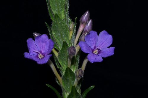 华南可爱花,既然有华南二字,是不是就产华南地区了?不完全对,除了华南的广东、广西外,西南的贵州和云南也有分布。其与可爱花相比,它的植株稍矮小,分枝没那么多,茎也不如可爱花粗壮,叶片多为椭圆形至狭椭圆形,稍小,在细节特征上,花色蓝色至浅蓝色,苞片上具缘毛。华南可爱花在不同环境下,不同水肥条件下的表现也会有所不同。它的蓝色,在三姐妹中色泽是最淡的,是浅蓝的那种,带有绢的质感,如小家碧玉般清秀。华南可爱花有一个特点,花后一段时间里花朵凋而不谢,仅由淡蓝色变成淡黄色或淡黄褐色,尤立枝头,仿佛不肯、不甘离去吧,有那么点小小的、淡淡的愁。