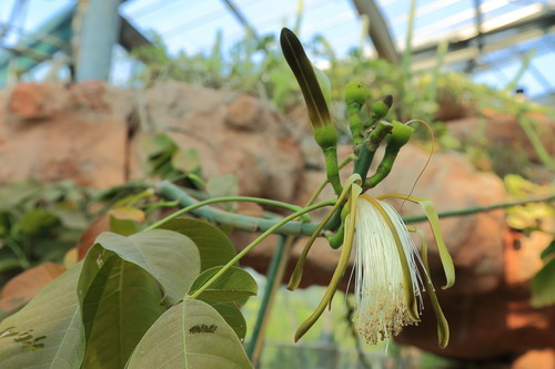 在华南植物园,你还能遇见与寻常“不一样”的木棉。热带雨林温室内经嫁接修剪后的木棉盆景,树姿奇特,个子矮了不少,妈妈再也不用担心我拍照打卡困难了,“so easy”;沙漠温室内来自美洲的龟纹木棉为多年生肉质植物,同样早春开花,花朵硕大,大相径庭是其花冠为数百条白丝组成,花丝多而长,银丝万缕,别有一番风采;在达尔文雕像附近,有一亭台取其木棉之意境,名为“红棉”,在这万花争春之际,邀你于华南植物园感受“曲径通幽,春花意浓”。