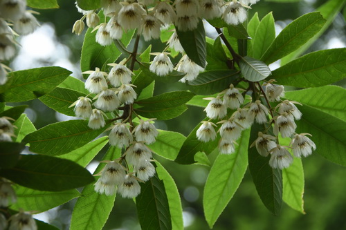 另有一种细叶杜英,为杜英属栽培种,株型稍散乱些,叶片略狭小,花也稍小,但花量更大,一时间,玉英缤纷、乱琼飞舞,蝴蝶、蜜蜂穿梭期间,怎一个美字了得?!