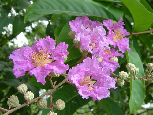 迟些时间,即将迎来花期的还有大花紫薇Lagerstroemia speciosa,同是千屈菜科紫薇属常绿乔木,也是南方城市目前较常见的良好绿化树种,树形整齐,叶大、花大,花色更浓郁些。