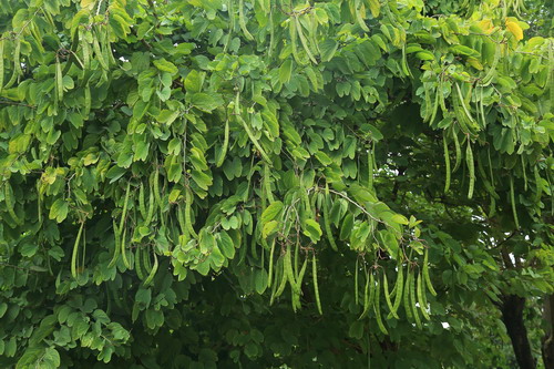 如果万一,你发现开紫红色花的红花羊蹄甲树上同时挂了果荚,那也不用惊慌。一般来说,这株树是嫁接的,就是在植株小的时候,将红花羊蹄甲的枝条嫁接在洋紫荆或羊蹄甲的树上。仔细观察一下树身,就会发现嫁接时留下的刀口痕迹,嫁接位之上的枝条开出紫红色的花,嫁接位之下长出的枝条则挂上了果荚。