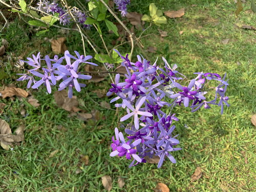 值得一提的是,蓝花藤的萼片掉落后收集起来还可以做花环,在国外也称之“紫色的花环(Purple Wreath)”或“皇后的花环(Queen's Wreath)”。