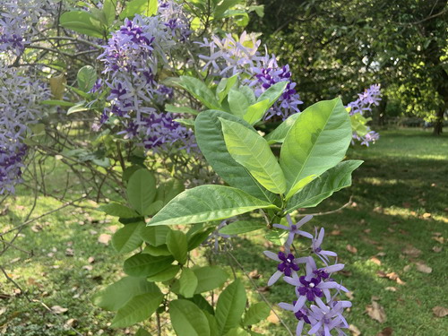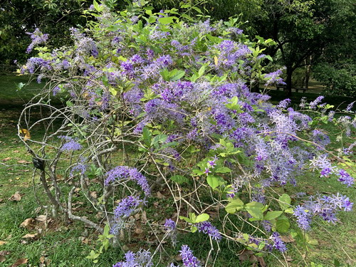 华南植物园藤本园和中心大草坪附近园林树木区的蓝花藤今年(2020年)已是二次开花,其第一次开花是在3月底,花期持续了十几天。这种短期内二次开花的现象实属少见,着实让人惊讶。