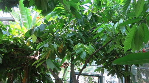 制造巧克力糖和饮料的主要原料可可树(Theobroma cacao)是梧桐科常绿乔木,高可达12-15米,其果实即为“可可豆”。可可树平均寿命大概是25-30年,最高可达40年。可可树种植3年后才会开花,植后4-5年开始结实,10-20年树龄产量最高。可可花直接开在枝干上,花期几乎全年,但能结果的只有约1%。