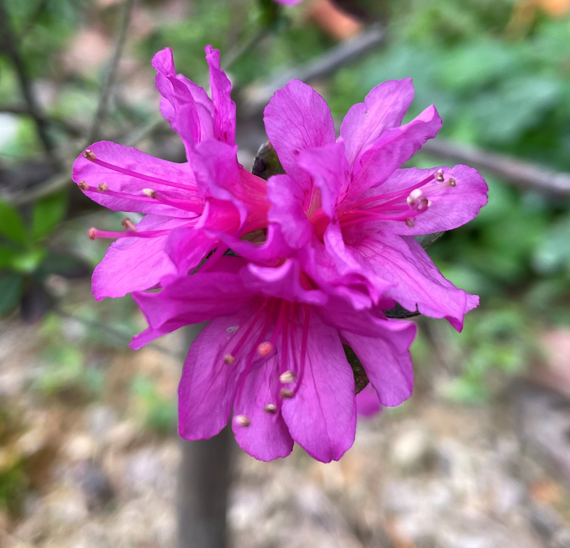 这紫衣的美人是谁?紫得典雅,静谧,它便是杜鹃花品种‘小紫凤’,花型小巧,花瓣重瓣,花亦如其名,“紫凤”迎春风。