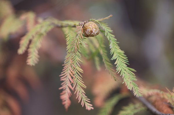 这里有个小插曲,常有朋友将落羽杉误认为国家一级保护植物水杉(Metasequoia glyptostroboides Hu & W. C. Cheng)。水杉和落羽杉外表相似,很难分辨,我们可从叶子直观的来区分,水杉的小叶是宽、柔软且对生,落羽杉的小叶则是互生,而且更细。水杉为柏科水杉属植物,有丰富的化石记录,但一直未发现活植物,植物学家曾一度认为水杉已绝迹。1941年,水杉在湖北省利川县磨刀溪被发现,1948年,胡先骕(与陈焕镛并列称为植物学界 “北胡南陈”)、郑万钧两位教授正式将其命名为“水杉”,“活化石”水杉的发现被学术界认为是20世纪植物学史上最伟大的发现之一。1962年2月17日《人民日报》发表胡先骕创作的《水杉歌》诗作,科学内涵丰富,文学意境高远,水杉渐渐被人们所认知。如今,水杉和落羽杉独特的形态、色彩、风韵之美绽放世界上的许多国家和地区,它们都是大自然馈赠的礼物。