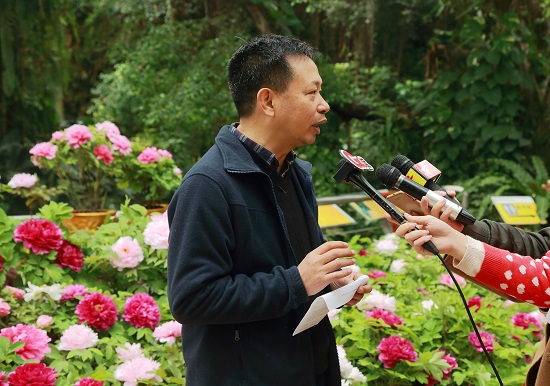 1月31日,华南植物园于“第七届牡丹花展”即将开幕之际举行新闻发布会,各界嘉宾、新闻媒体记者及游客等100余人参加了发布会。 华南植物园廖景平博士向媒体记者详细介绍了本次牡丹花展的情况、特点及花展期间即将举办的各类科普文化活动,并就牡丹的类别、反季节花期调控技术、园艺养护知识、国内外牡丹品种育种栽培技术及成果等回答了记者提问。