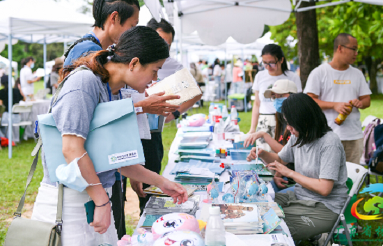 讲坛同期举办2020粤港澳自然教育嘉年华活动,嘉年华持续3天时间,来自粤港澳地区的35家单位参与其中。各参与机构均推出了特色主题活动,一顶顶白色帐篷前游客不绝,广大市民通过各种行形式参与这场盛宴。在华南植物园展位上,游客们纷纷现场制作押花工艺品及叶脉书签。此外,展位还摆设各种特色植物艺术品,十分精美漂亮。