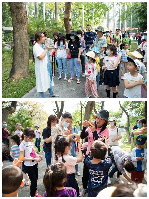 课程一开始,科普老师带着大家一起赶着春的尾巴踏青去。青翠秀气的樟树,原只知道它的枝、叶具有芳香刺激气味,可以驱虫醒脑, 却不知它还可以作染料染色。不远处有白花点点,走近香气漫溢,原来是残留枝头的栀子花,它的果实是染黄色的传统染料。路边的枫香树是南方有名的红叶树,这会枝头挂满刚长出不久的新叶,青翠欲滴、清新可人,它的枝叶也是可以用来做黑色、灰色染料。往前走,不久前还粉的白的热闹、摇曳招展,灿烂了整个春光的洋蹄甲已回归素朴,默默孕育着满树果荚。蒲葵路路旁的草地上覆着一些斑白,如北国冬雪初融的样子,原来是木棉花妈妈的孩子们裹着棉絮开始了人生旅程。小竹林竹子轻摇着秀美曼妙的身姿和我们打招呼,谁想到,竹叶也能作为墨绿、翠绿、浅绿等各种绿色的染料植物。不远处,岭南常见的荔枝树、水蒲桃同样可以做染料。看来,身边可以做染料的植物太多了!不仅植物的花、叶、果能提取色素,还能从蔬菜中的紫甘蓝、红萝卜、洋葱、苋菜、和水果中的葡萄、桑葚、蓝莓、草莓叶子等中提取色素。