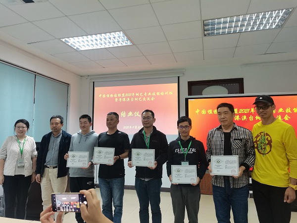 最后,华南植物园园艺中心廖景平副主任阐述了在华南植物园建立树艺师团队的初衷,希望大家以培训班为契机,继续互相学习和交流,并把学习的收获带回到自己的工作岗位,为中国植物园的发展做出自己的努力。中国植物园联盟培训主管杨玺代表中国植物园联盟秘书处表达了对结业学员的祝贺,并感谢了授课讲师的大力支持和承办方的精心安排。廖景平和杨玺为所有学员颁发了结业证书。 、