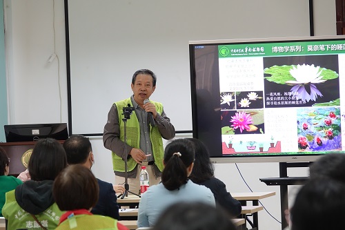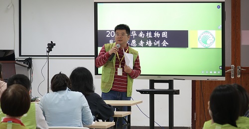 培训会上,廖景平研究员作《植物园志愿服务的历史、进展与展望》的专题讲座,培训使志愿者们进一步了解植物园志愿工作的情况和植物园的工作定位。讲座中,廖主任阐述了各国植物园志愿服务工作的历史和服务内容,介绍了华南植物园历年来的志愿工作情况、志愿服务的意义,以及对未来华南植物园志愿服务工作发展的规划和期待,为志愿者们奉上一顿丰富的知识“大餐”。