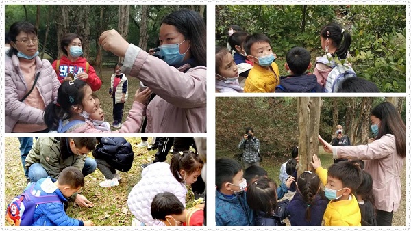 小花老师带孩子们沿着大王椰子路,开始了探寻自然之旅。地上好多的树叶,找一找,捡起来,撕开它闻一闻,叶子香香的,这是香樟树的叶。孩子们四处寻找着,找到不同的叶子与种子,都一一拾起来收好。