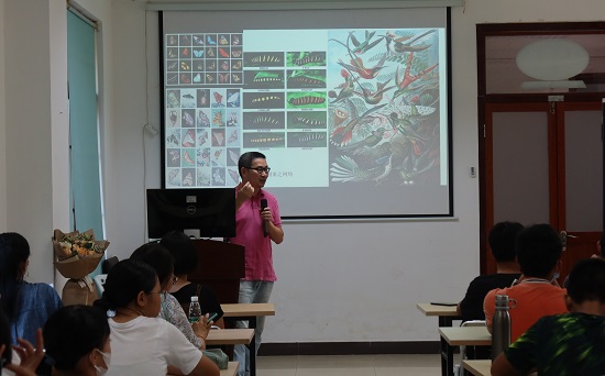 40多位初中生参加了活动,认真听取了华南植物园罗世孝研究员关于《揭秘夜空下的植物红娘》专题科普课程,学习到花的结构与性别、植物开花的目的、什么叫传粉、如何进行传粉生物学研究等知识。罗老师以红花八角为例开始讲述了他和他的团队是如何通过观察实验发现瘿蚊是它的传粉昆虫。在讲解过程中,罗老师还为同学们讲解科研的不易,他的团队在花期时间内一直没有观察到访花昆虫,而当后面发现花里面的虫卵可能是访花昆虫时已经错过了植物的花期,在经历了一年的准备后进行了大量的观察实验,终于确定花粉是由瘿蚊带来的,并对这个植物进行了授粉。通过这个小故事,罗老师告诉同学们:“科研是艰辛的,需要有定力才能去做,但是科研所带来的成果是快乐的、有价值的,所有的坚持都会有回报,不管过程如何辛苦,当收获来临的时候都是值得的”。