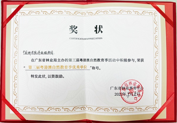 9月29日获悉,在广东省林业局主办的第三届粤港澳自然教育季活动中,中国科学院华南植物园荣获了“第三届粤港澳自然教育季优秀单位”称号,园艺中心科普旅游部苏嘉艺荣获“第三届粤港澳自然教育季优秀个人”的荣誉。
