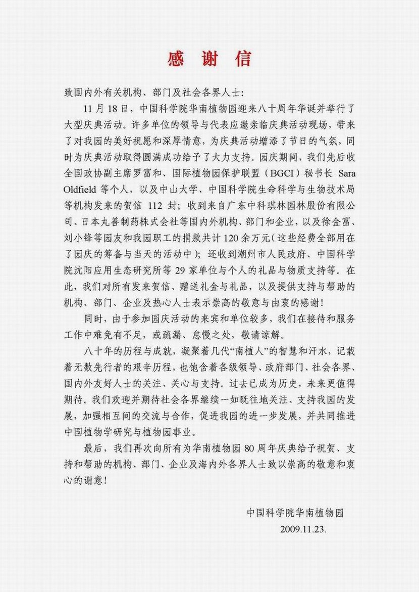——热烈祝贺中国科学院华南植物园成立80周年 2009年,中国科学院华南植物园(简称华南植物园)迎来80华诞。80年来,经过几代科学家的艰苦奋斗和不懈努力,特别是改革开放以来,在中国科学院的亲切关怀和知识创新工程的引领下,位于祖国南大门风光迤逦的华南植物园已经成为从事热带、亚热带植物科学研究、物种保育、...